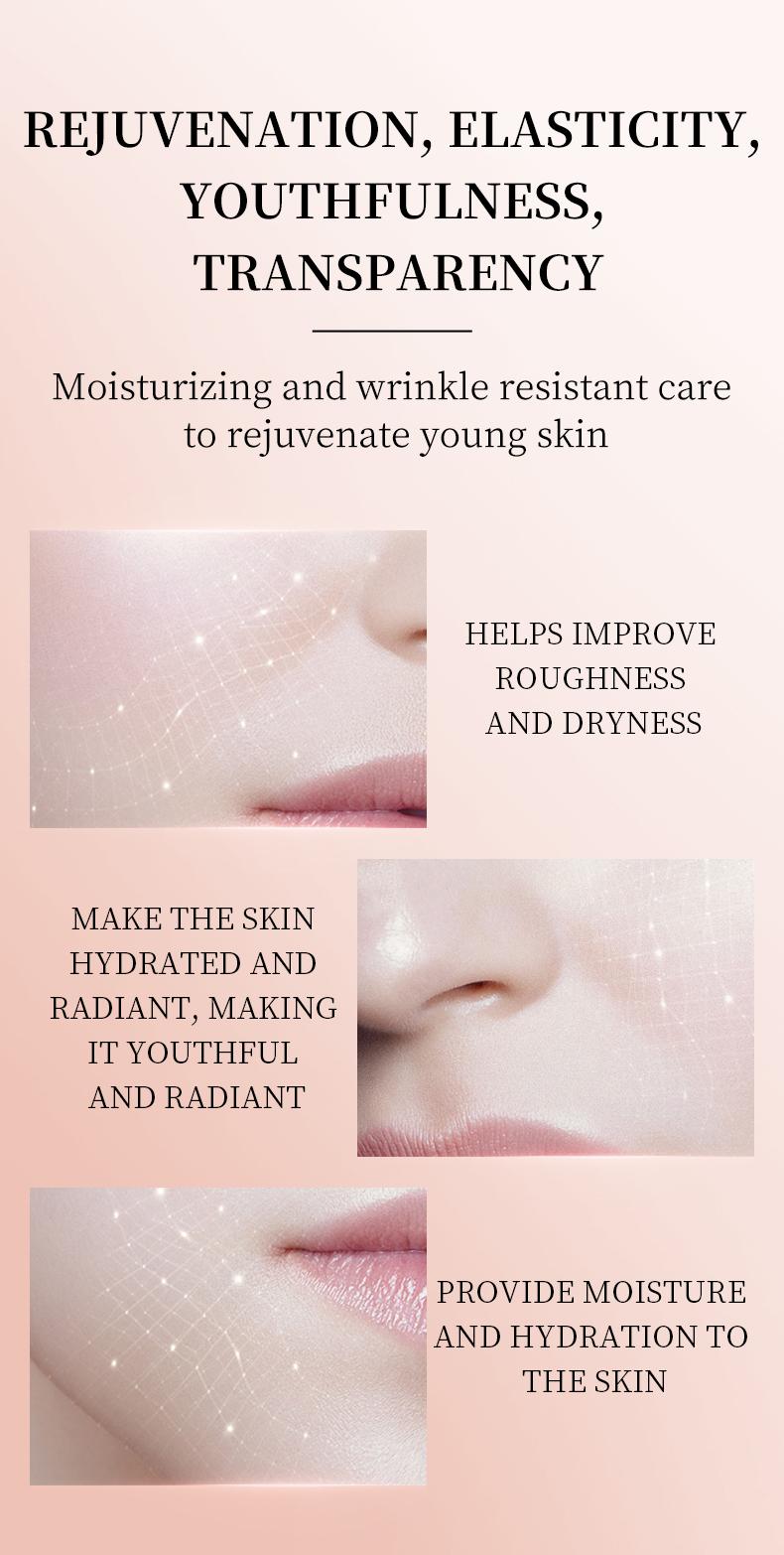 BENEFITS:Smooth and delicate texture, easy to absorb. Hydrating moisturizing the skin helps to improve roughness dryness leaving the skin hydrated and moisturized